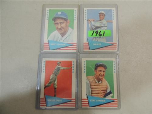 LOT 4 FLEER #21, 55, 15, 70 BASEBALL GREATS CARDS. AS SHOWN. VIEW PICTURE FOR DETAIL.