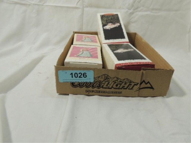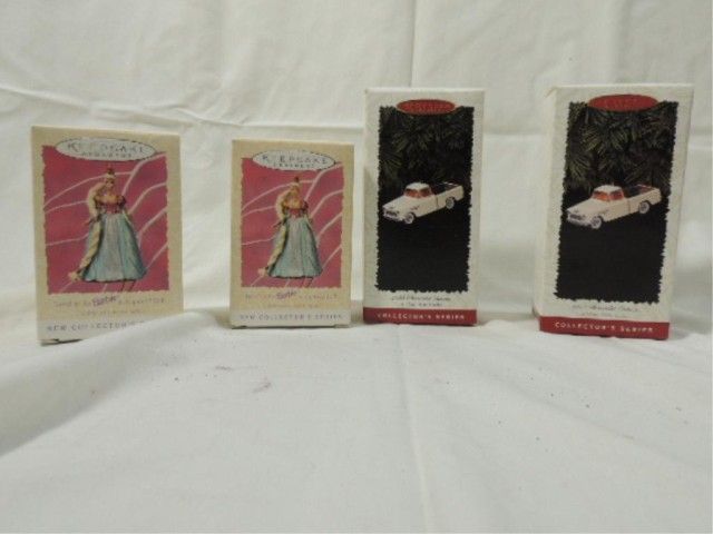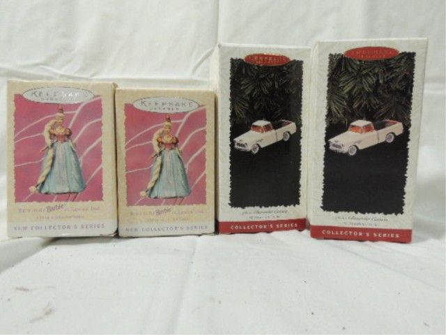 4 ORNAMENTS BRAND NEW IN THE BOXES, AS SHOWN. ALL AMERICAN TRUCKS AND BARBIE.