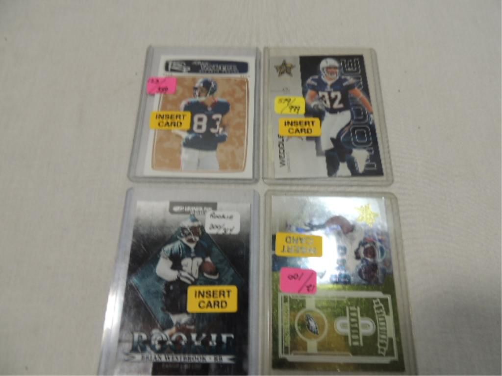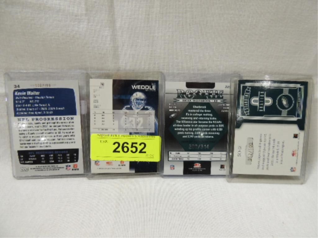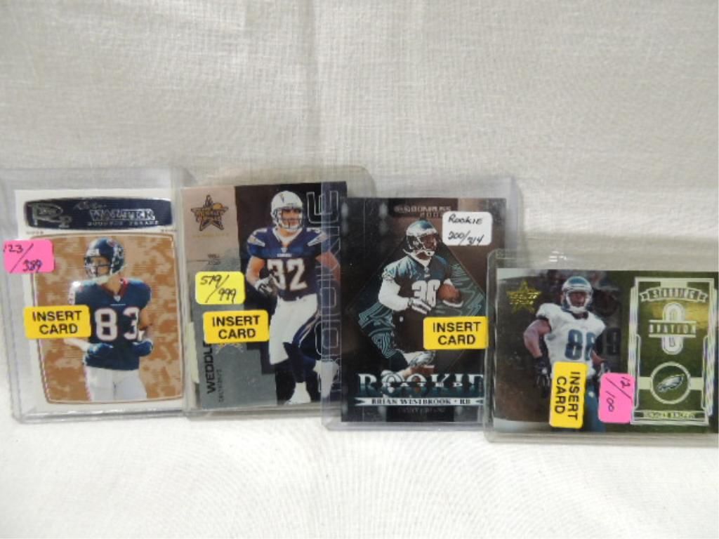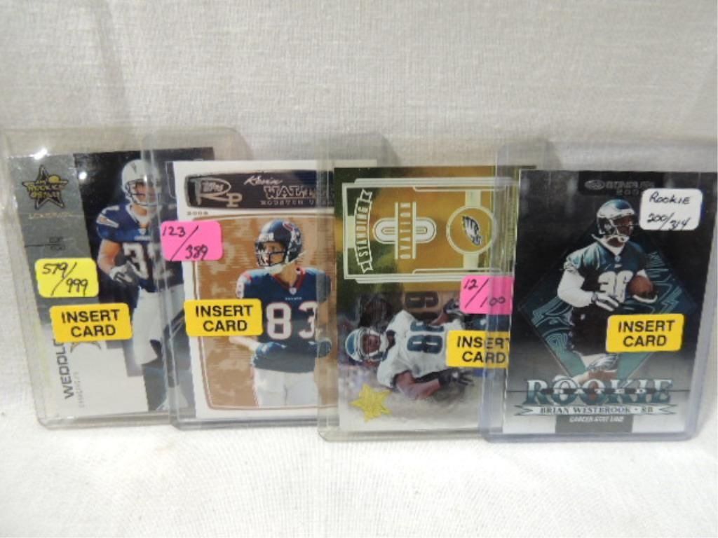 LOT 4 INSERT FOOTBALL PLAYER CARDS. BRIAN WESTBROOK, REGGIE BROWN, KEVIN WALTER, ERIC WEDDLE. AS SHOWN. SEE PHOTOS FOR DETAILS.
