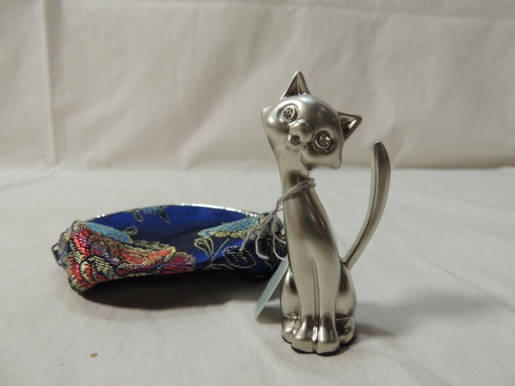 KITTY CAT RING HOLDER CZ EYES. IN COIN PURSE. AS SHOWN. SEE PHOTO FOR MORE DETAILS.