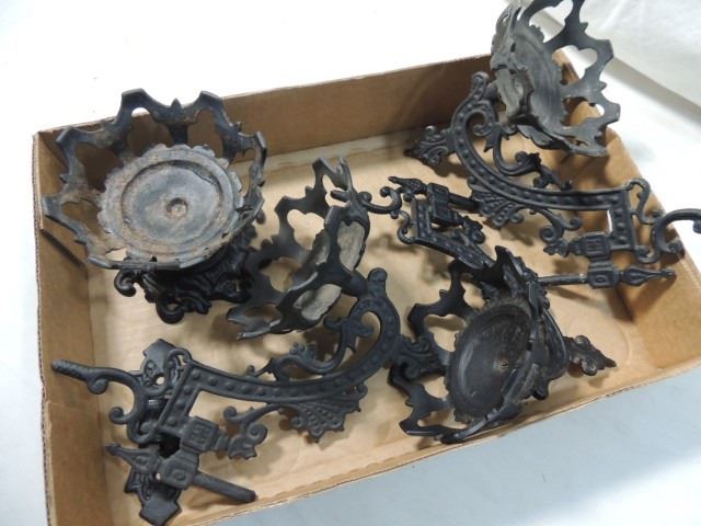 LOT 4 LANTERN LAMP HOLDERS CAST IRON WALL BASE