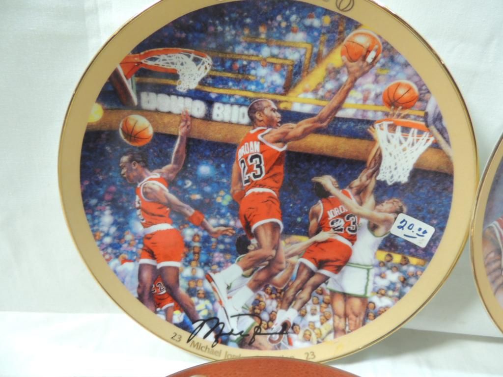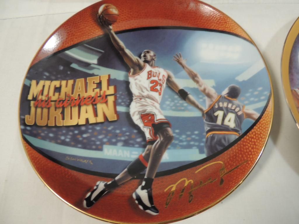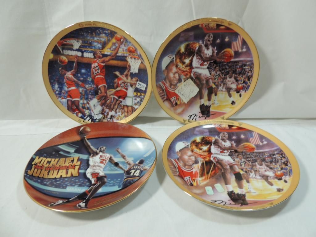 FOUR MICHAEL JORDAN COLLECTORS PLATES. MICHAEL JORDAN COLLECTION PLATE. COLLECTORS PLATE. DECORATIVE PLATE. AS SHOWN. SEE PHOTO FOR MORE DETAILS.