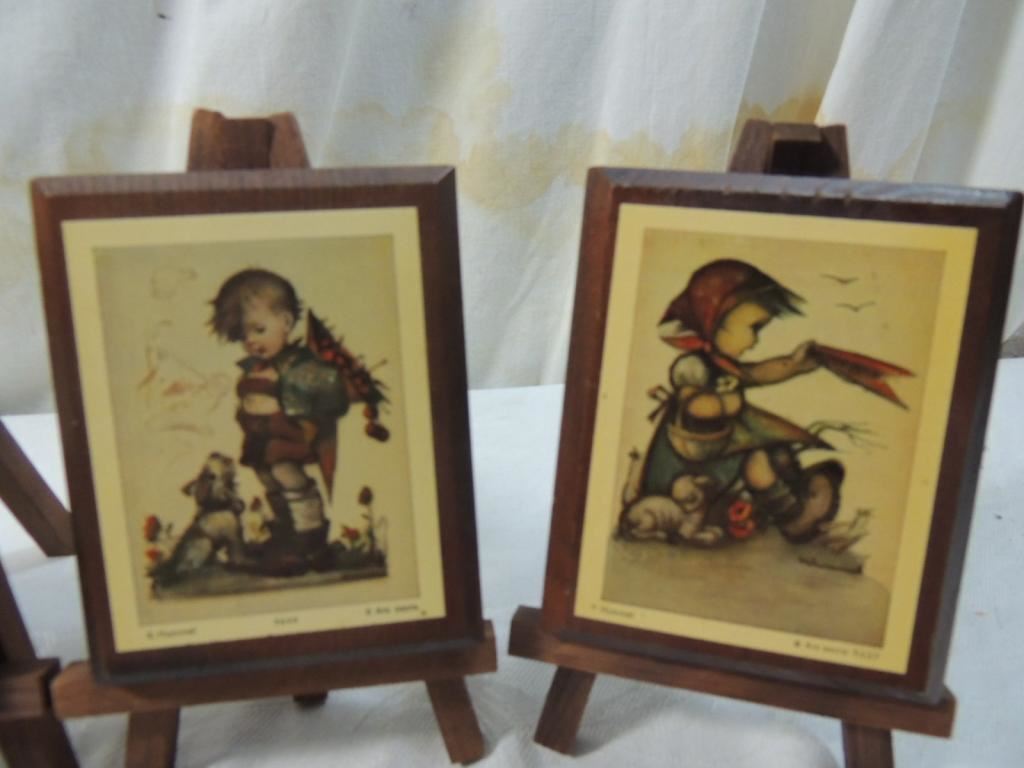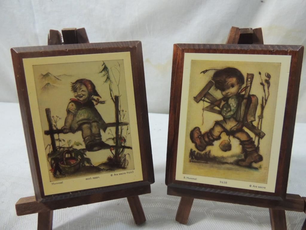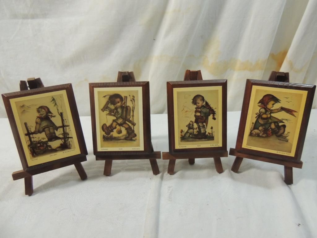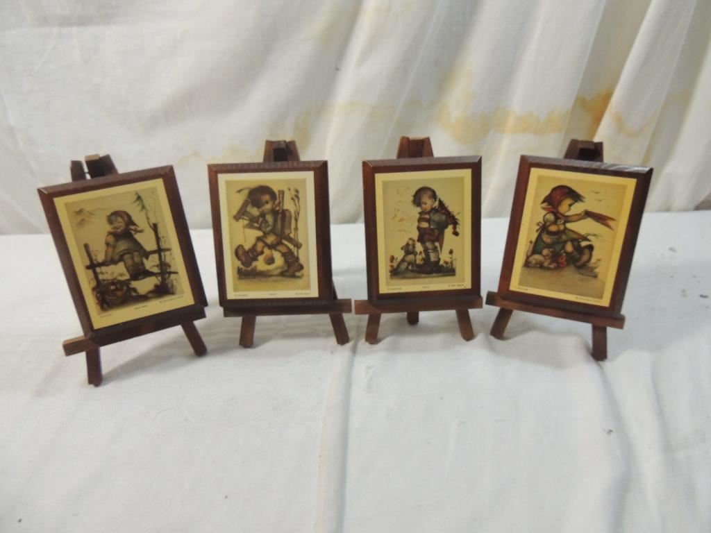 MANCHESTER WOOD MINI HUMMELS WITH EASELS, COLLECTIBLE HUMMEL PICTURES. AS SHOWN SEE PHOTO FOR MORE DETAILS.