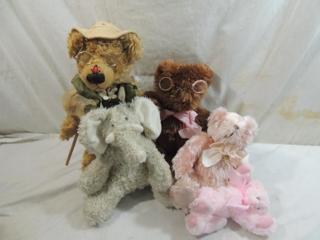 COLLECTIBLE STUFFED ANIMALS, PLUSH ANIMALS, COLLECTORS ANIMALS, VINTAGE STYLE ANIMALS, TEDDY BEARS AS SHOWN SEE PHOTO FOR MORE DETAILS
