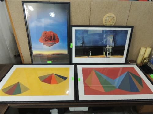 LOT 4 FRAMED MODERN POSTER ART: SALVADOR DALI (26X38), (2) CUBISM (29X41), COLDWATER COLLECTION (26X38). AS SHOWN. VIEW PICTURE FOR DETAIL.