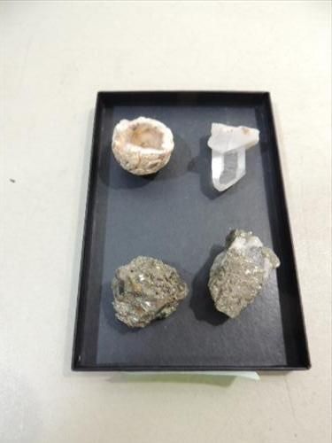 LOT 4 NATIVE CRYSTAL ROCKS: PYRITE (FOOLS GOLD), QUARTZ AND A GEODE. AS SHOWN. VIEW PICTURE FOR DETAIL.