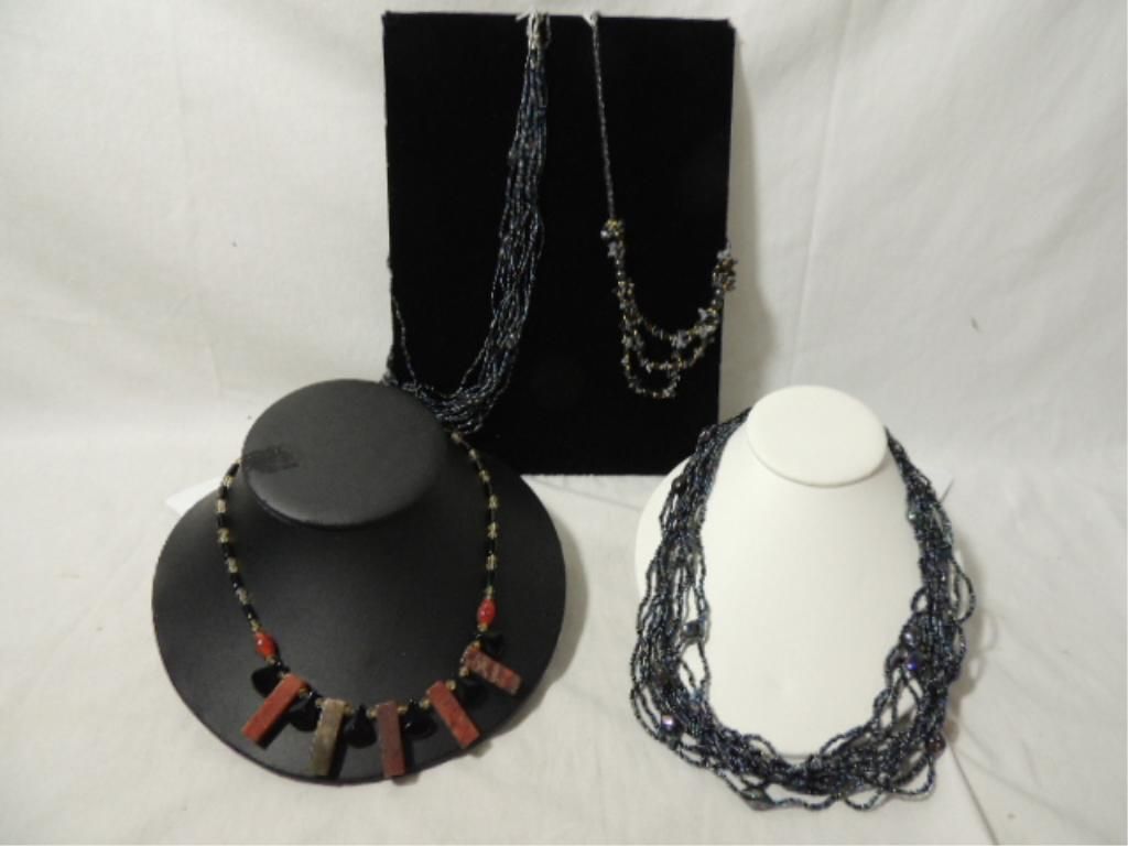 BRAND NEW DARK BEADED NECKLACE, IRRIDESCENT COLORED DARK BEADED MULTI STRAND NECKLACE., AS SHOWN. SEE PICTURES FOR DETAILS.