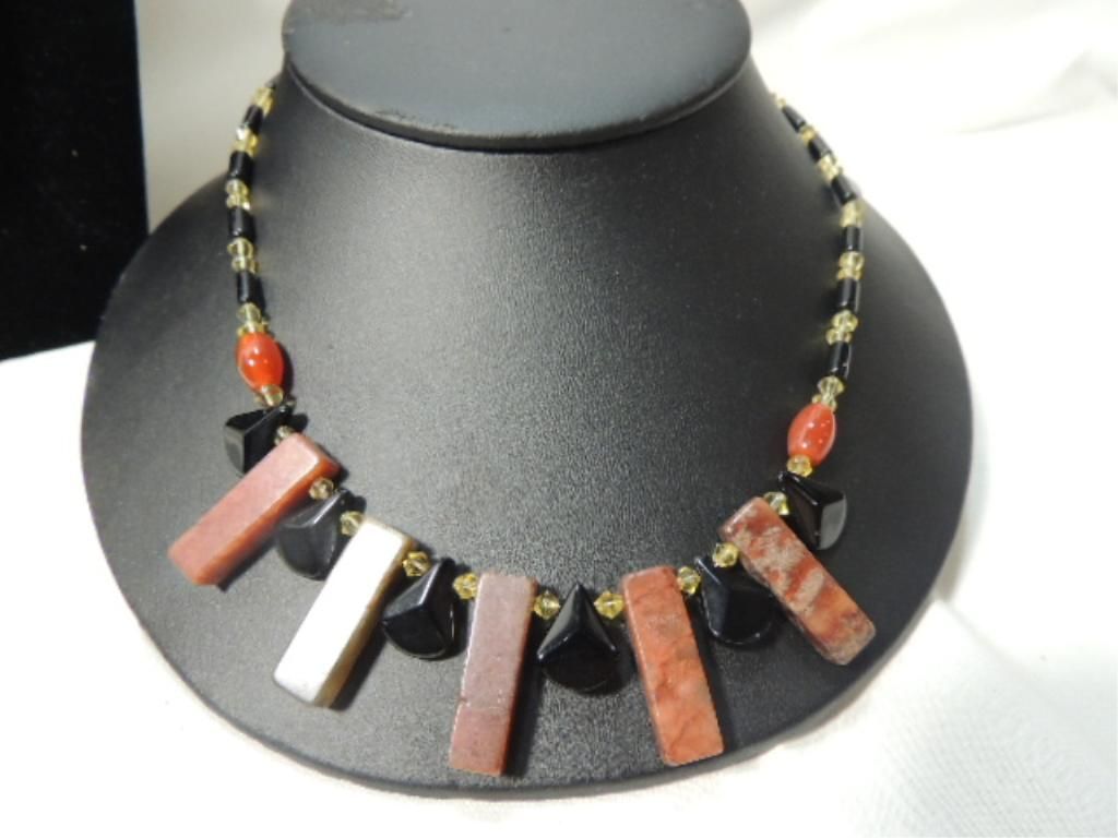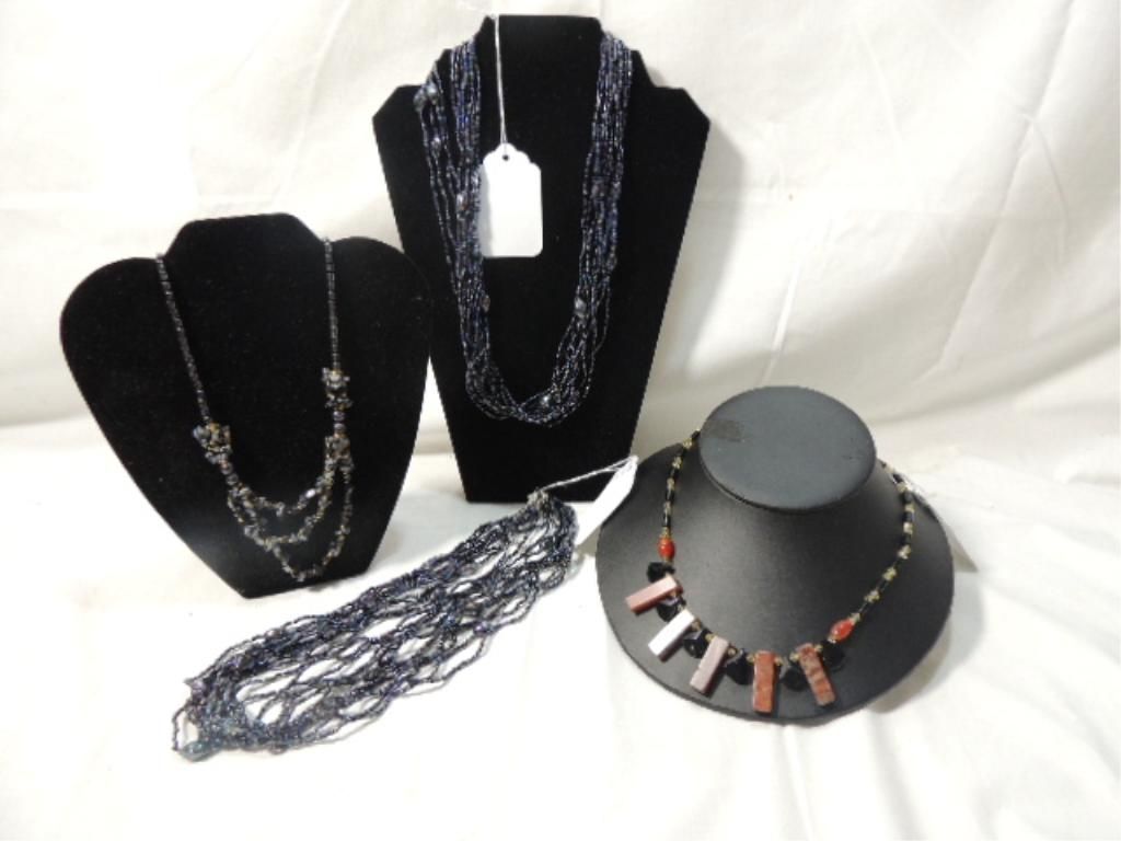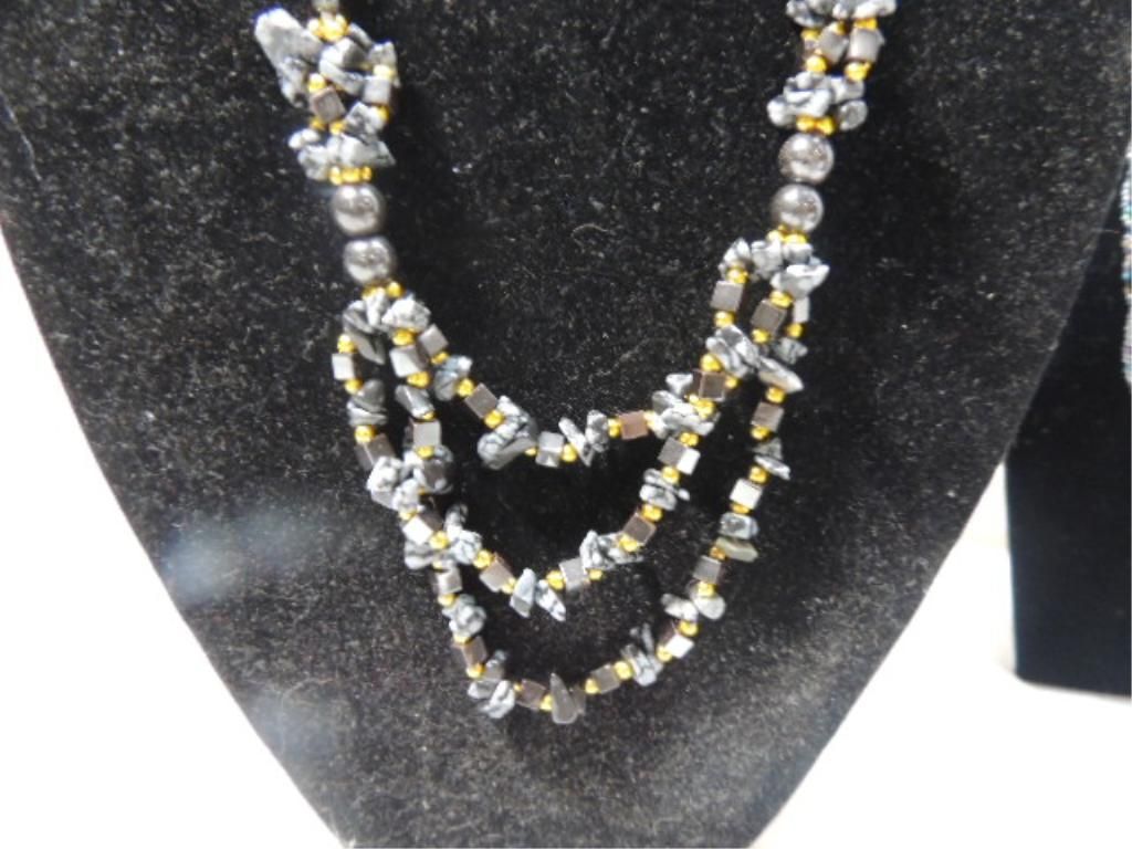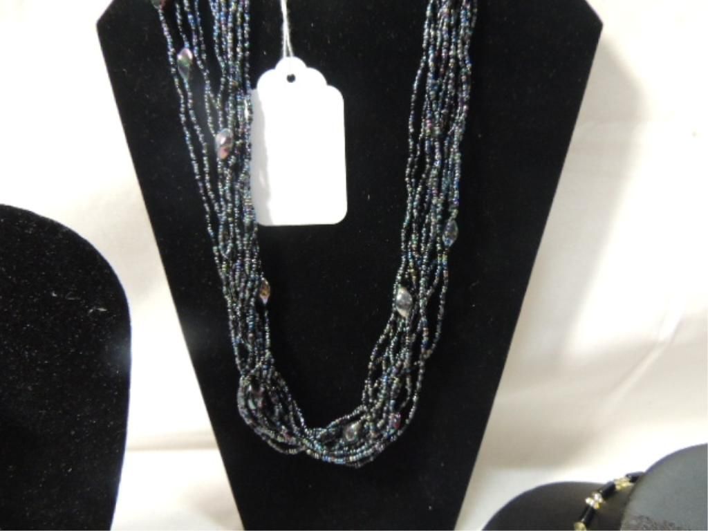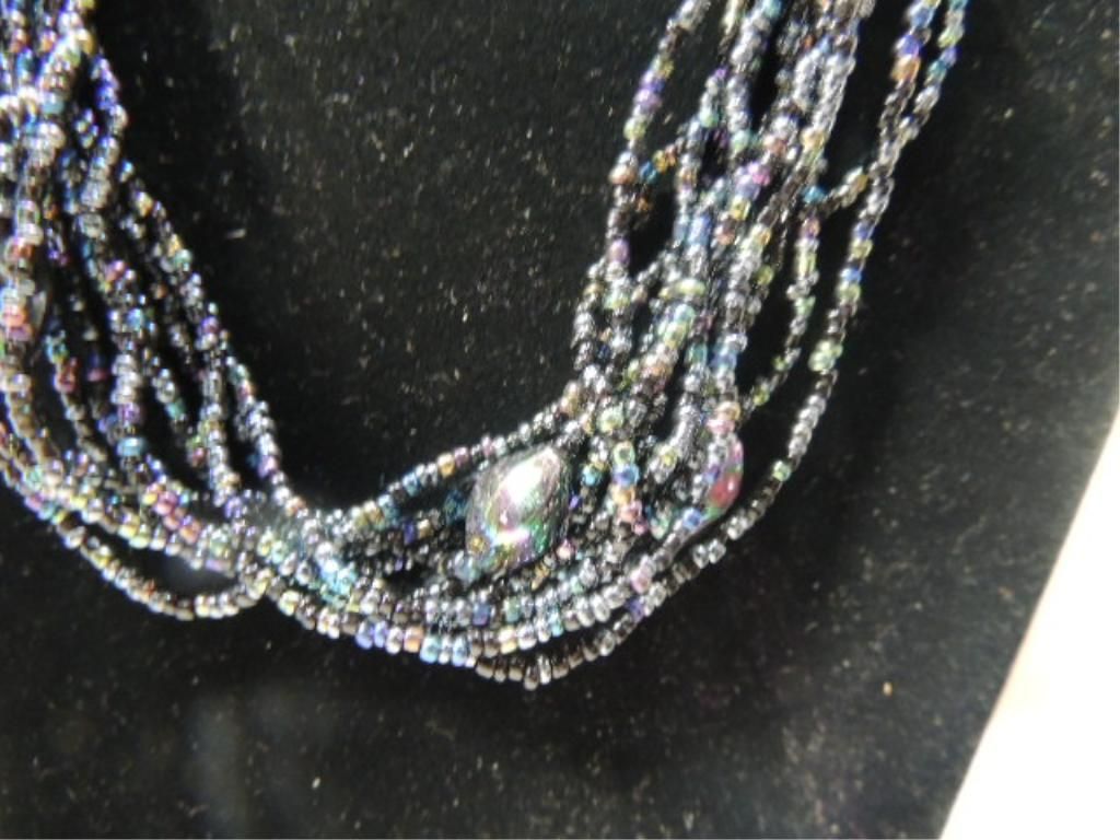 BRAND NEW DARK BEADED NECKLACE, IRRIDESCENT COLORED DARK BEADED MULTI STRAND NECKLACE., AS SHOWN. SEE PICTURES FOR DETAILS