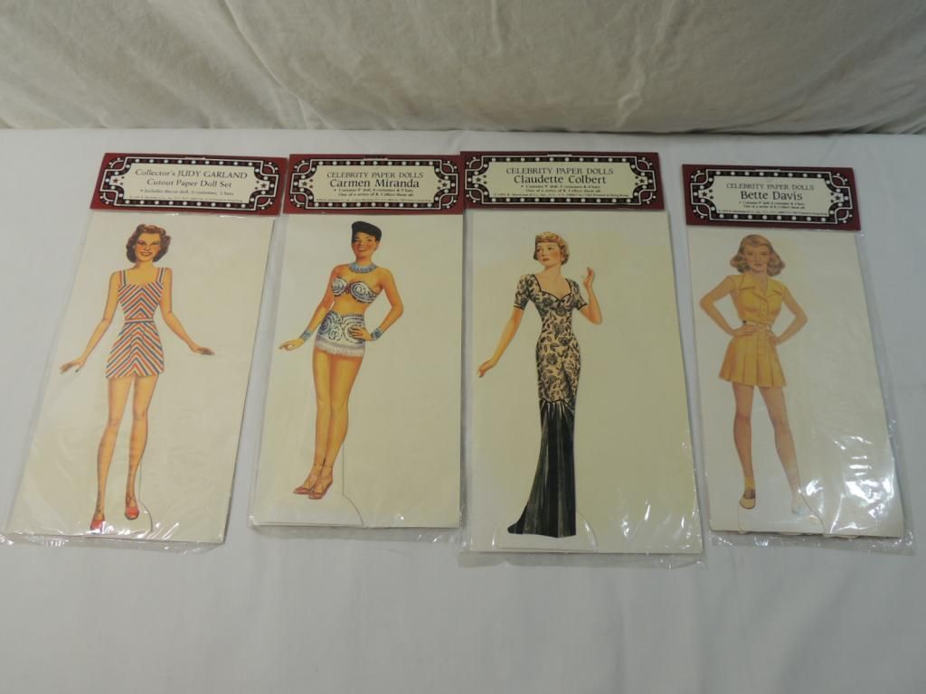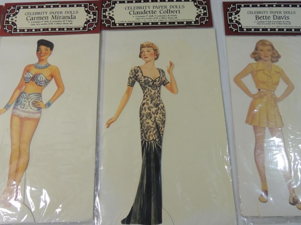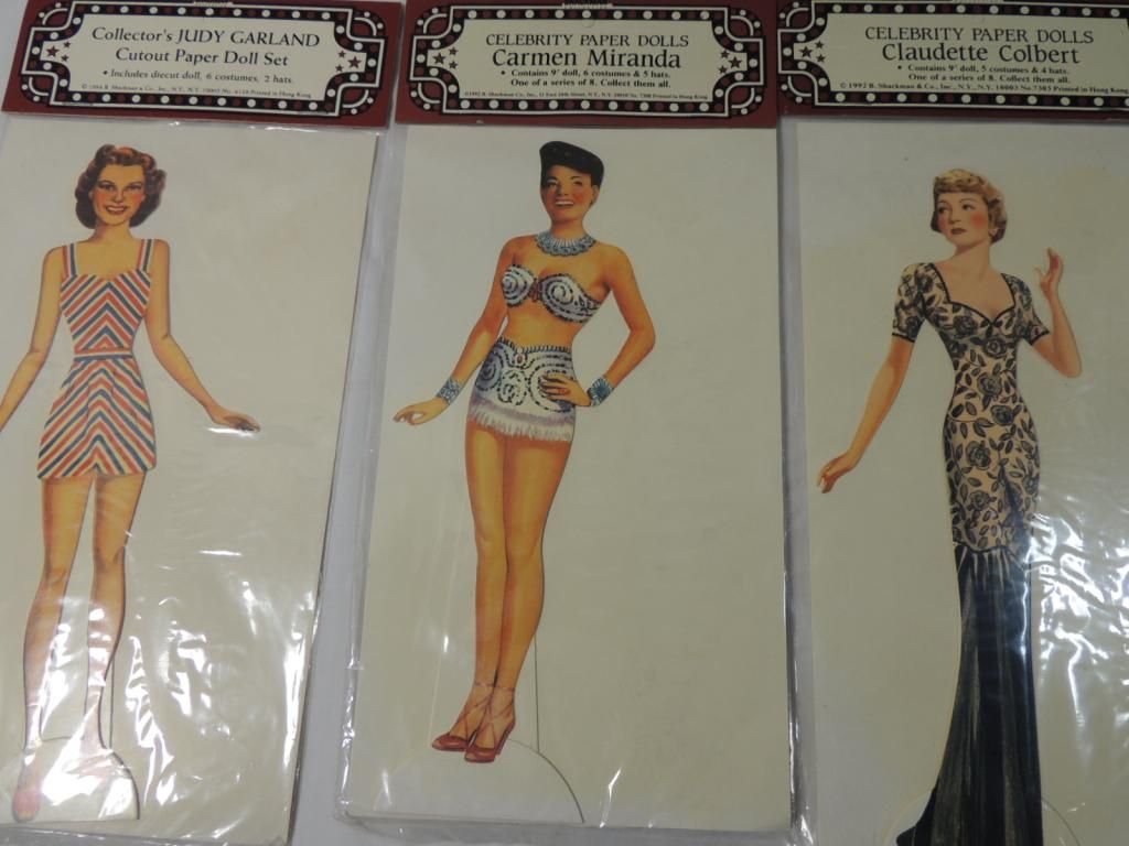 BETTE DAVIS, JUDY GARLAND, CARMEN MIRANDA, CLAUDETTE COLBERT CONTAINS 9" DOLL, 5 COSTUMES, SERIES OF 8. COLLECTIBLE. NEW IN PACKAGE. AS SHOWN SEE PHOTO FOR MORE DETAILS.