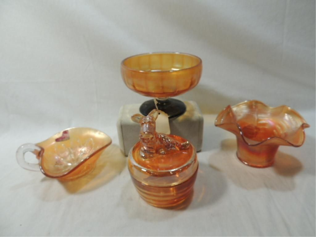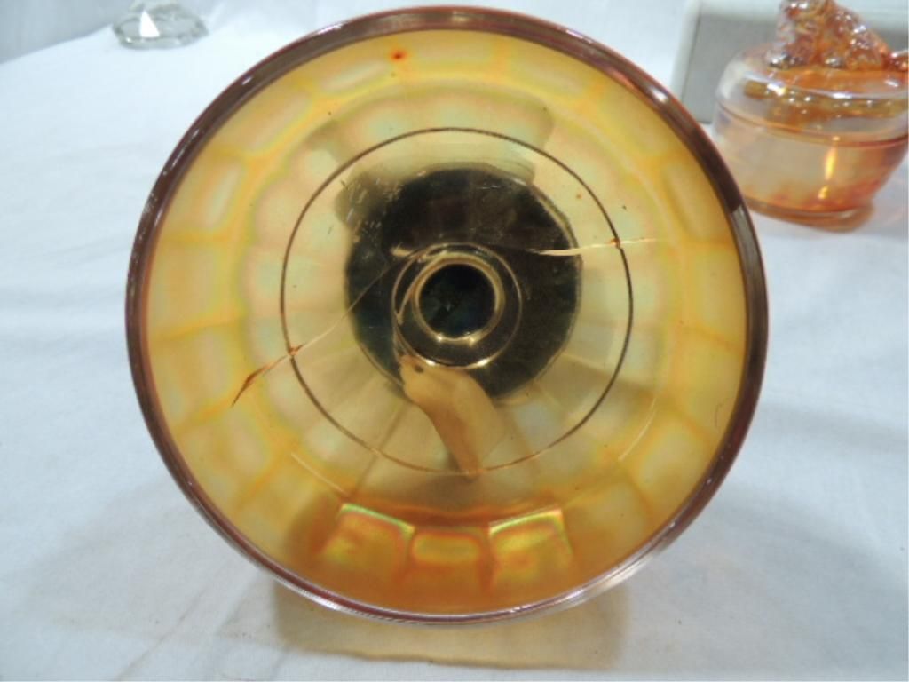 CARNIVAL GLASS, AURORA GLASS, DOPE GLASS, RAINBOW GLASS, TAFFETA GLASS, MARIGOLD CARNIVAL GLASS. BOWLS, CANDY DISHES, AS SHOWN. PHOTO FOR MORE DETAILS.