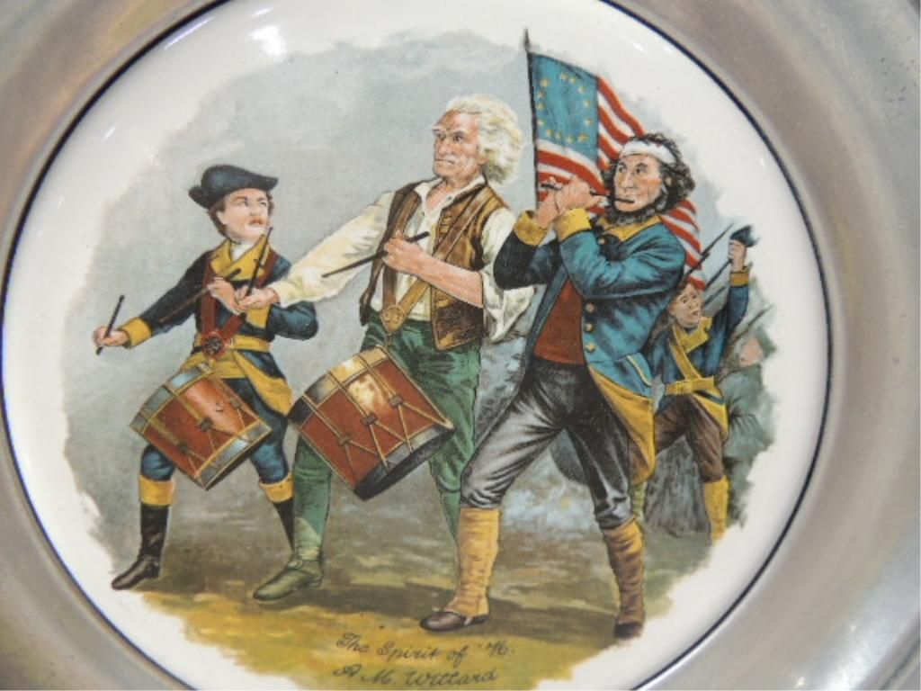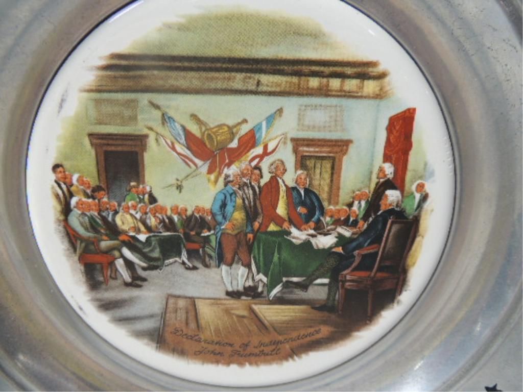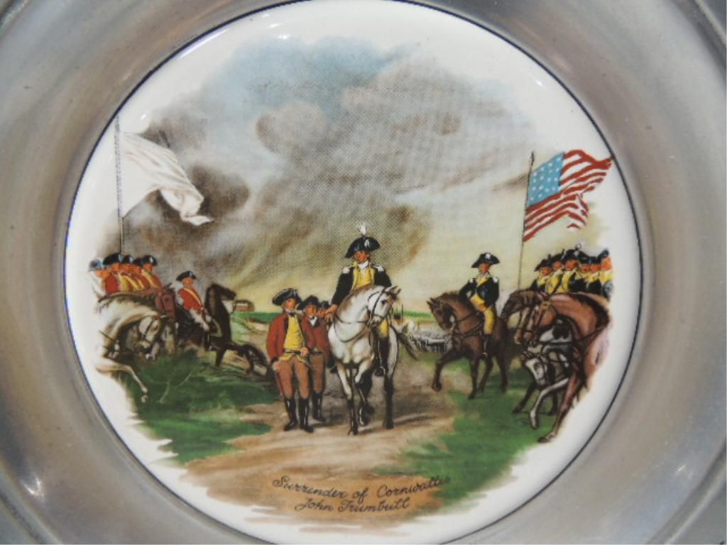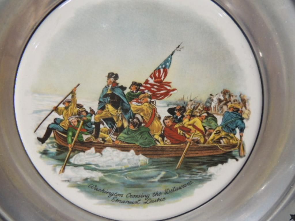 CANTON PEWTER THE GREAT AMERICAN REVOLUTION 1776 VINTAGE PATRIOTIC PEWTER PLATES. THE SPIRIT OF 76, WASHINGTON CROSSING THE DELAWARE, DECLARATION OF INDEPENDENCE, SURRENDER OF CORNWALLIS. AS SHOWN SEE PHOTO FOR MORE DETAILS.