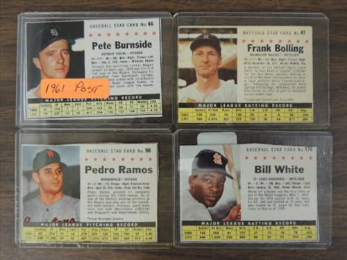 LOT 4 POST CEREAL #176, 41, 98, 46 BASEBALL CARDS. AS SHOWN. VIEW PICTURE FOR DETAIL.