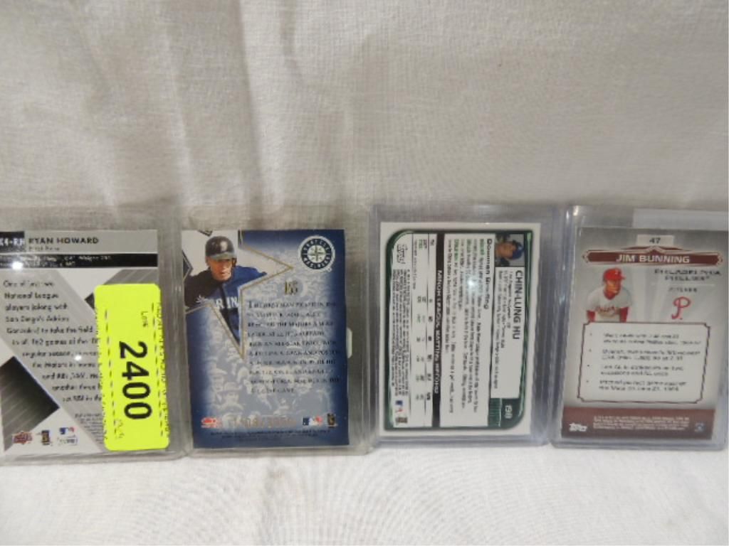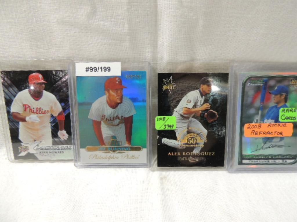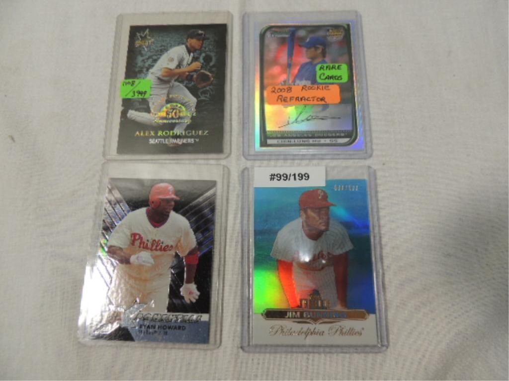 LOT 4 RARE BASEBALL PLAYERS CARDS. 2008 ROOKIE REFRACTOR CHIN LUNG HU. GOLD LEAF ALEX RODRIGUEZ. TOPPS TRIBUTE JIM BUNNING. UPPER DECK RYAN HOWARD. SEE PICTURE FOR DETAILS.