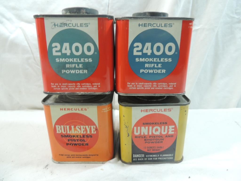 HERCULES 2400 SMOKELESS RIFLE POWDER, BULLSEYE SMOKELESS PISTOL POWDER AMMUNITION AS SHOWN SEE PHOTO FOR MORE DETAILS.