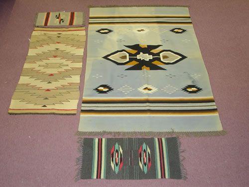 LOT (4) SOUTHWEST WEAVINGS-SERAPE TYPE DESIGNS INCLUDING (1) NAVAJO SADDLE BLANKET - WEAR & LOSSES
