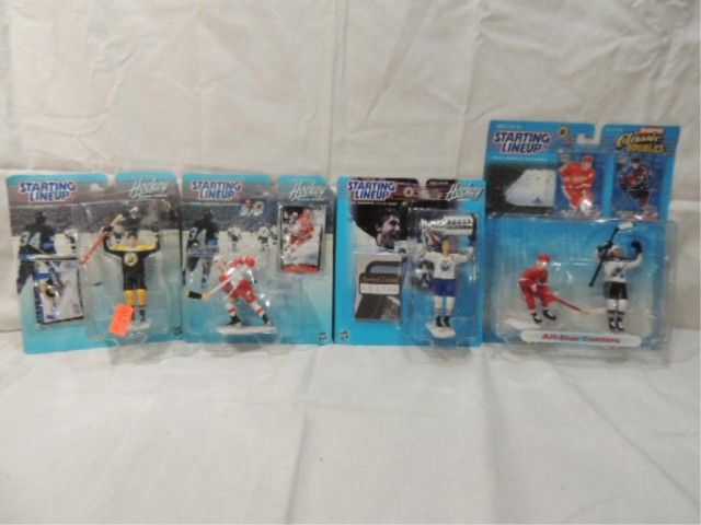 2 1999 STARTING LINEUP FIGURINES AND THEIR CARD. SAMSONOU AND YZERMAN. 2000 STARTING LINEUP HOCKEY FIGURINE AND POSTER, GRETZKY. 2000 CLASSIC DOUBLES STARTING LINEUP ALL STAR CENTERS FIGURINES AND CARDS, SET OF 2.