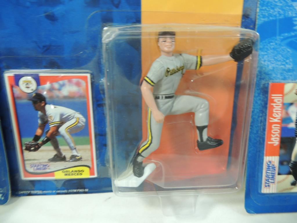STARTING LINEUP BASEBALL PLAYER FIGURES. JASON KENDALL, MIKE DUNNE, SID BREAM, ORLANDO MERCED PITTSBURGH, PIRATES, ACTION FIGURES. NEVER OPENED AS SHOWN SEE PHOTO FOR MORE DETAILS.