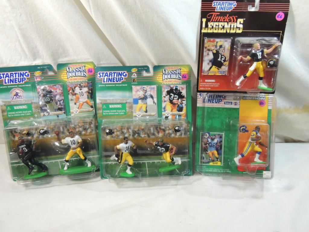 TERRY BRADSHAW, JEROME BETTIS, JEROME BETTIS & FRANCO HARRIS, KORDELL STEWART CTION FIGURE STARTING LINEUP GREAT CONDITION. NFL COLLECTIBLE NEW NEVER OPENED. SPORTS SUPERSTAR COLLECTIBLES AS SHOWN SEE PHOTO FOR MORE DETAILS. AS SHOWN SEE PHOTO FOR MORE DETAILS.