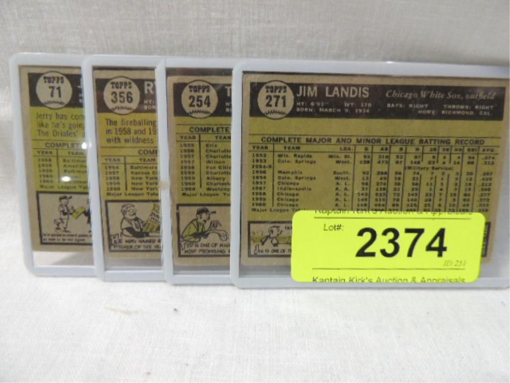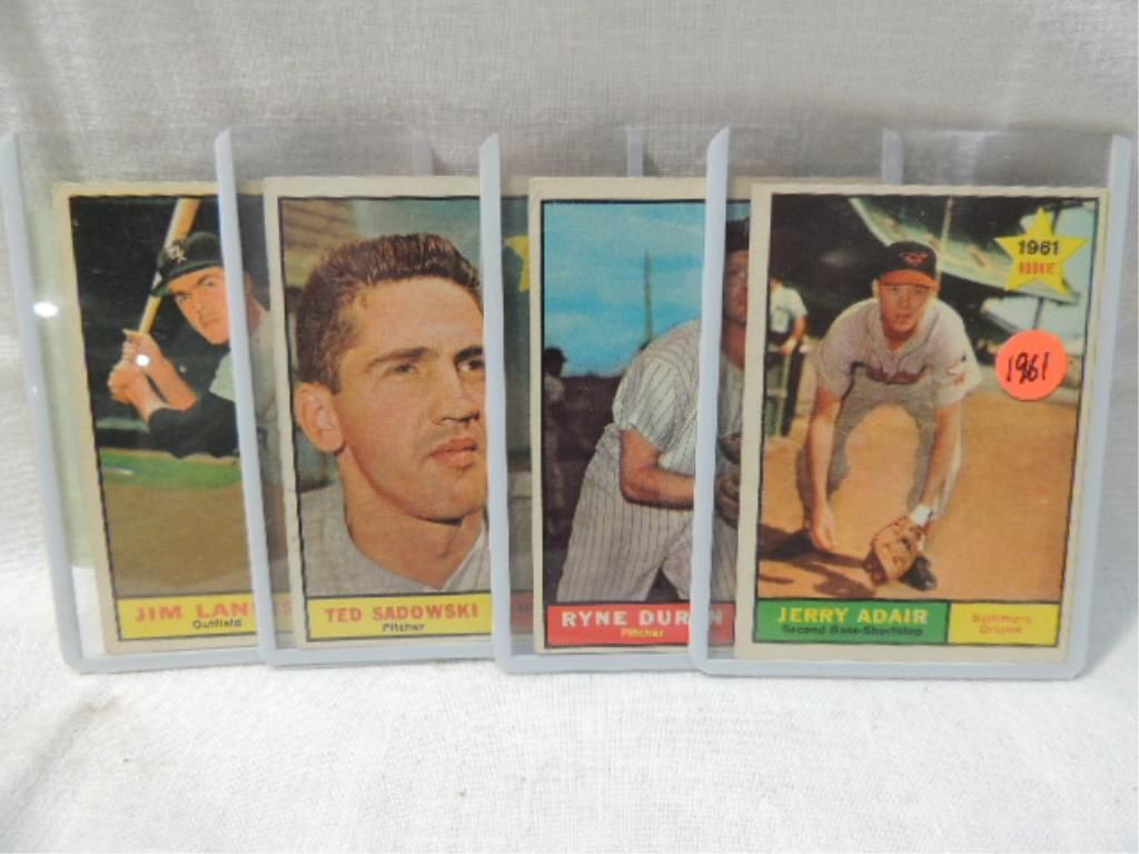 LOT 4 TOPPS 1961 BASEBALL PLAYERS CARDS JERRY ADAIR, RYNE DUREN, TD SADOWSKI, JIM LANDIS