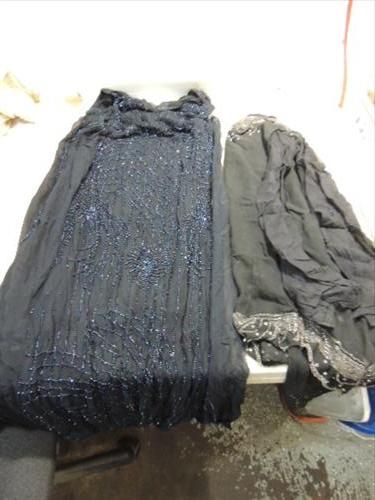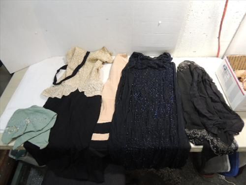 LOT 4 VINTAGE 1940S BEADED LADYS FORMAL DRESSES. AS SHOWN. VIEW PICTURE FOR DETAIL.