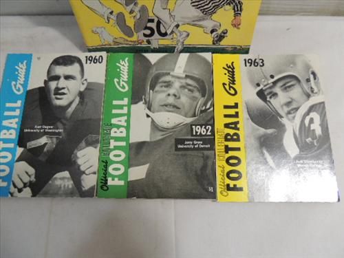 LOT 4 VINTAGE (3) 1960S COLLEGIATE FOOTBALL GUIDES & 1949 NORTHWESTERN GAME PROGRAM. AS SHOWN. VIEW PICTURE FOR DETAIL.