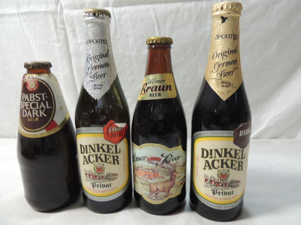 GERMAN BEERS. DINKEL ACKER, PABST SPECIAL DARK, DINKEL ACKER. FULL BOTTLES. VINTAGE BEER CANS. MEMORABILIA. BEER COLLECTIBLE. BREWARANA. MALT LIQUOR. RARE CANS. AS SHOWN. SEE PHOTO FOR MORE DETAILS