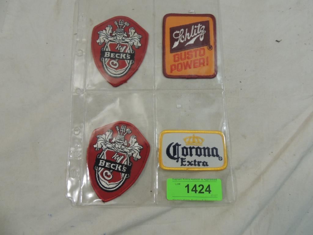 VINTAGE BEER PATCHES, BECKS, SCHLITZ, CORONA EXTRA PATCHES, VINTAGE PATCHES, BEER PATCHES AS SHOWN SEE PHOTO FOR MORE DETAILS.