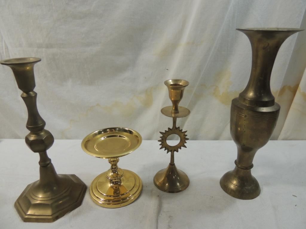 BRASS CANDLE STICKS, CANDLESTICKS, CANDLE HOLDER, DECORATIVE HOME DECOR VINTAGE AS SHOWN SEE PHOTO FOR MORE DETAILS.