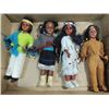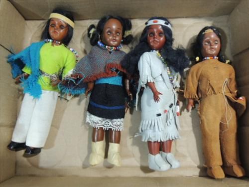 LOT 4 VINTAGE CARLTON DOLLS NATIVE AMERICAN GIRLS. 7"H. AS SHOWN. VIEW PICTURE FOR DETAIL.