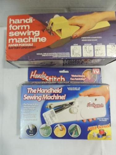 LOT 4 VINTAGE ITEMS: 2 HAND HELD SEWING MACHINES,