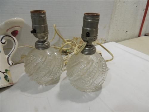 LOT 4 VINTAGE LAMPS: 1 CERAMIC WALL LAMP, 2 GLASS