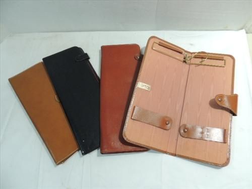 LOT 4 VINTAGE LEATHER TRAVEL CASES FOR MEN'S TIES & SUSPENDERS. AS SHOWN. VIEW PICTURE FOR DETAIL.