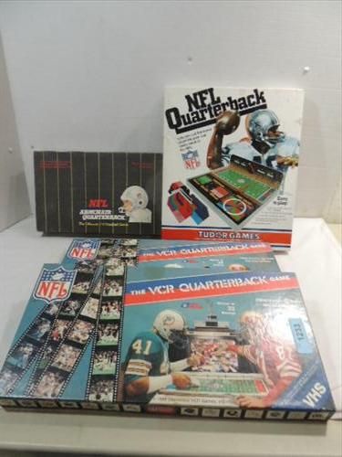 LOT 4 VINTAGE NFL FOOTBALL BOARD GAMES: 1986 ARMCHAIR QUARTERBACK, 1980 NFL QUARTERBACK AND 2 1986 INTERACTIVE VCR QUARTER BACK GAME. GAMES SEEM TO BE COMPLETE. AS SHOWN. VIEW PICTURE FOR DETAIL.