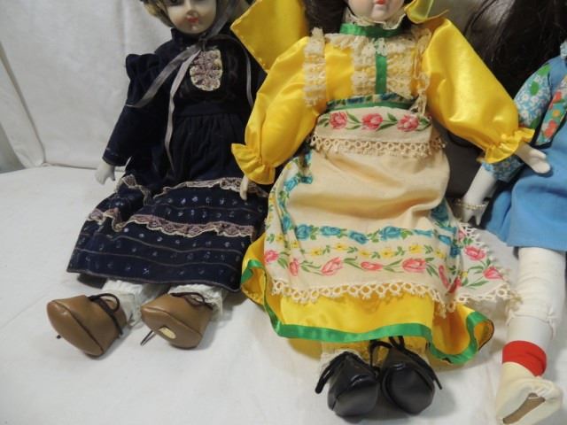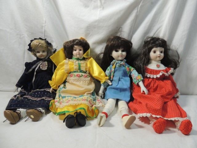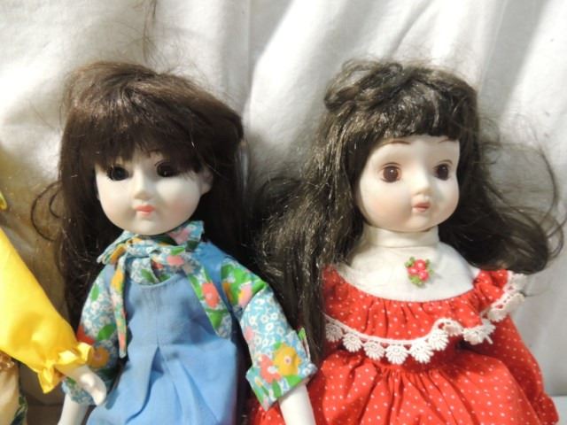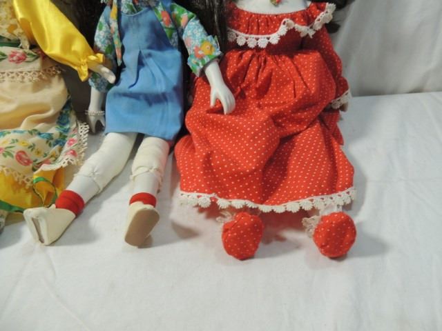 COLLECTIBLE DOLLS, VINTAGE DOLLS, COLLECTORS DOLLS, DESIGNER DOLLS, GOOD CONDITION, AS SHOWN SEE PHOTO FOR MORE DETAILS. THEY RANGE FROM 15-17" TALL. AS SHOWN. EXCELLENT LIKE NEW CONDITION.
