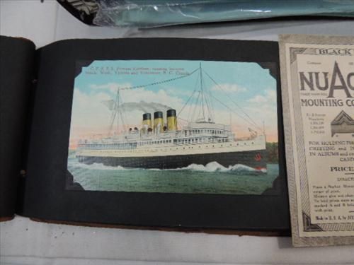 LOT 4 VINTAGE POSTAL CARD ALBUMS (2 EMPTY): 1 SET 1890S POSTAL CARDS IN SNAP SHOT ALBUM OF CANADIAN VACATION SITES. NUACE PHOTO MOUNTS. AS SHOWN. VIEW PICTURE FOR DETAIL.