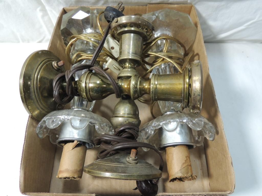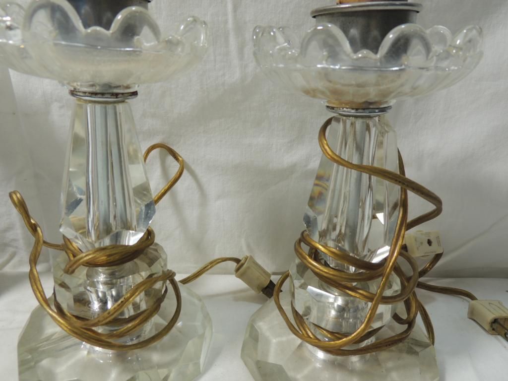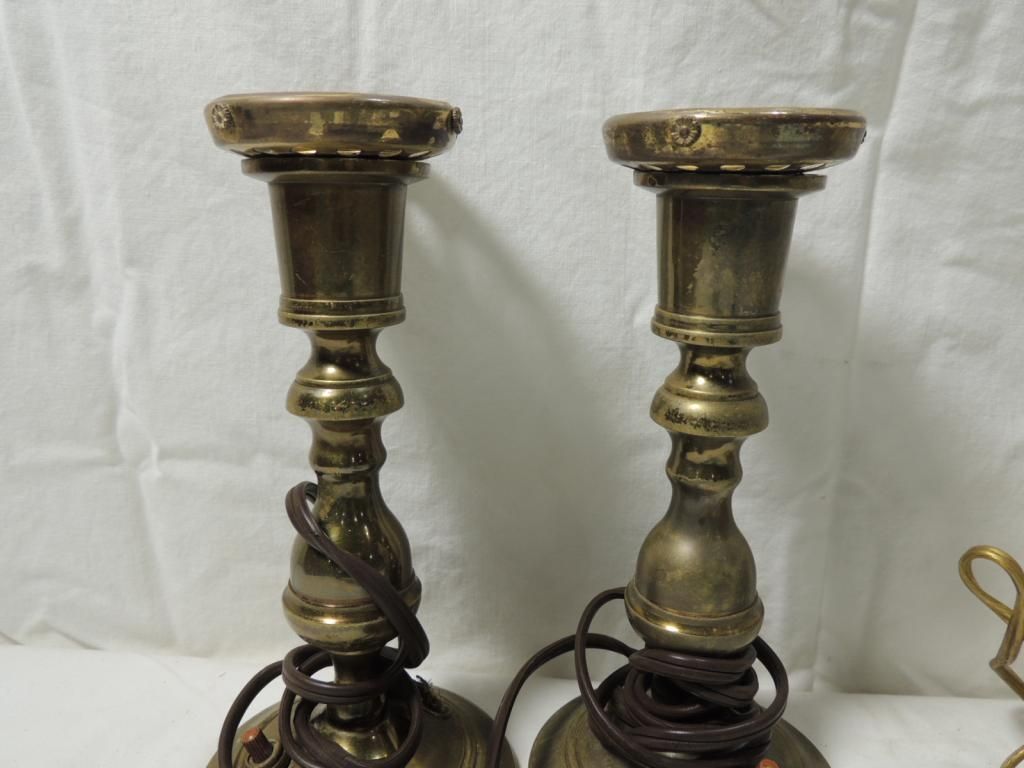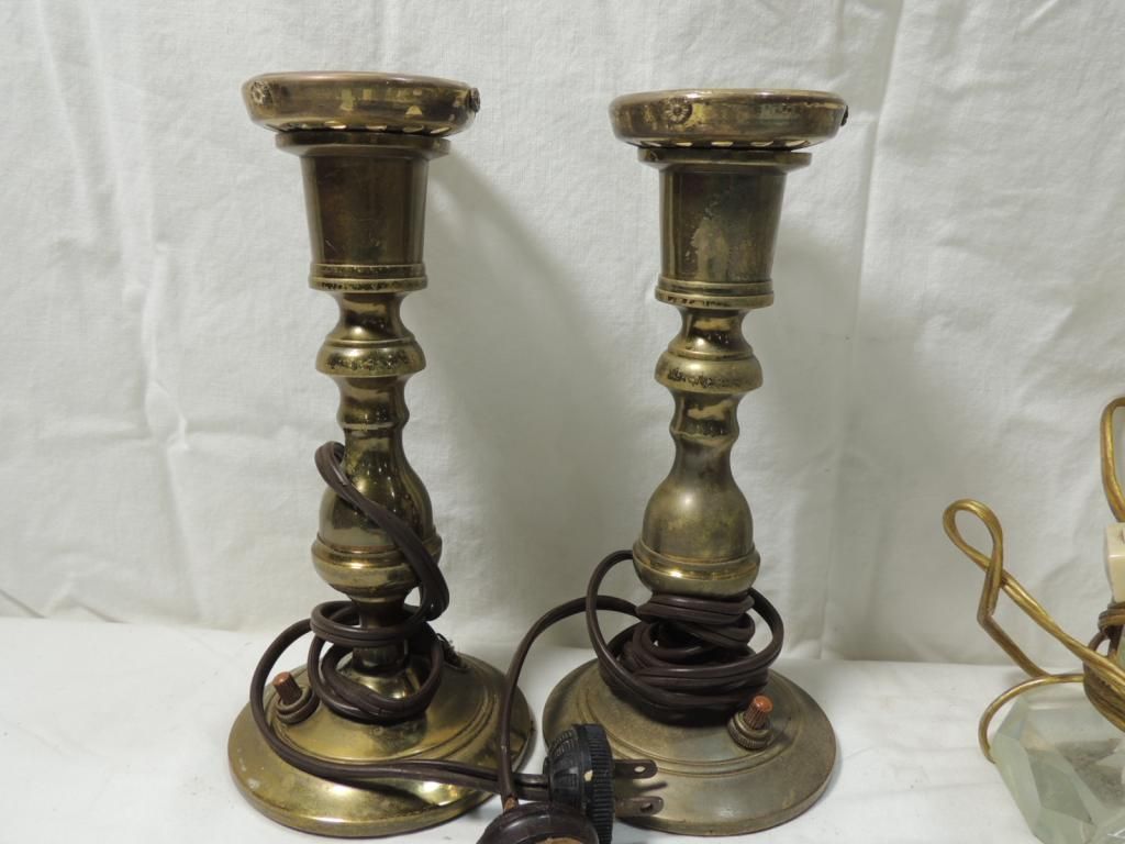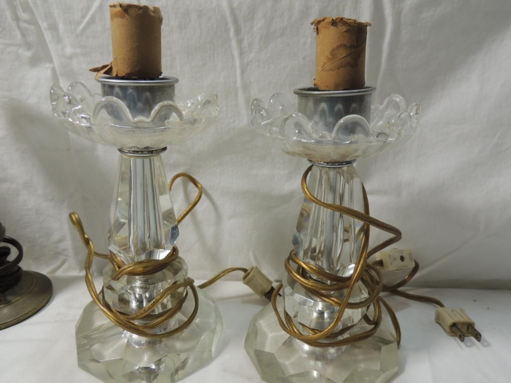 VINTAGE SMALL TABLE LAMPS. BRASS VINTAGE GLASS AS SHOWN. SEE PHOTO FOR MORE DETAILS.