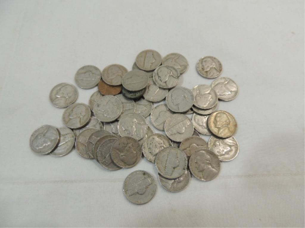 LOT 44 EARLY DATE CIRCULATED JEFFERSON NICKELS. AS SHOWN. VIEW PICTURE FOR DETAIL.