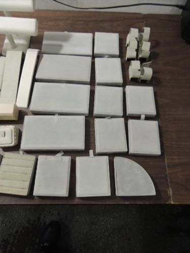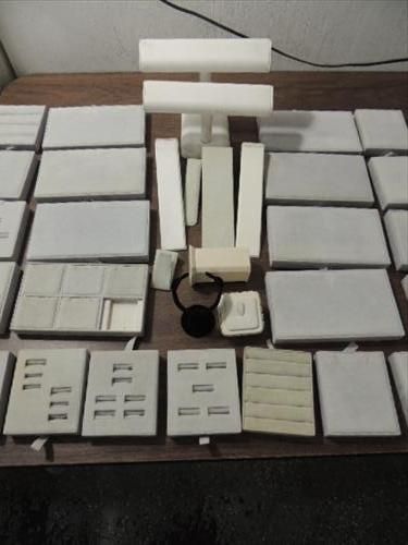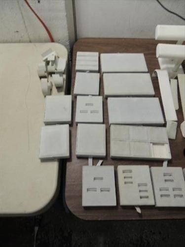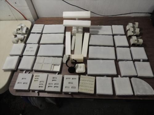 LOT 47 JEWELRY STORE DISPLAY ORGANIZERS: 12 WATCH DISPLAYS, 19 3X4 JEWELRY DISPLAYS, 8 4X7 JEWELRY DISPLAYS AND ASSORTED STYLE OF NECKLACE DISPLAYS. AS SHOWN. VIEW PICTURE FOR DETAIL.
