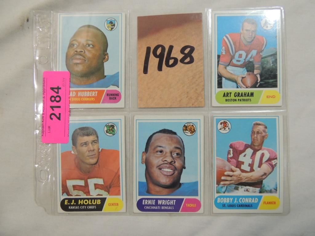 CHAD HUBBERT, EJ HOLUB, ERNIE WRIGHT, BOBBY CONRAD, ART GRAHAM, FOOTBALL CARD FOOTBALL PLAYER CARDS. TRADING CARDS. COLLECTIBLE. FOOTBALL MEMORABILIA. GOOD CONDITION AS SHOWN. SEE PHOTO FOR MORE DETAILS.