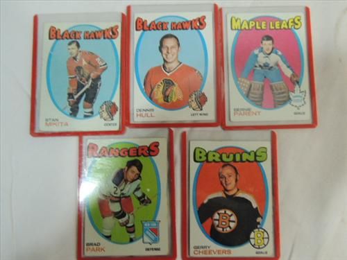 LOT 5 1970-71 TOPPS HOCKEY PLAYER CARDS: #125, 85, 131, 54, 40. AS SHOWN. VIEW PICTURE FOR DETAIL.