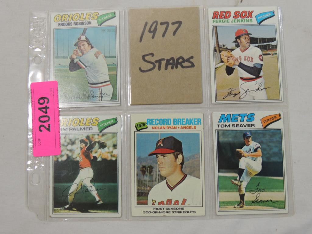 BROOKS ROBINSON, FERGIE JENKINS, JIM PALMER, NOLAN RYAN, TOM SEAVER BASEBALL PLAYER CARDS, TRADING CARDS, COLLECTIBLE, BASEBALL MEMORABILIA GOOD CONDITION, AS SHOWN SEE PHOTO FOR MORE DETAILS