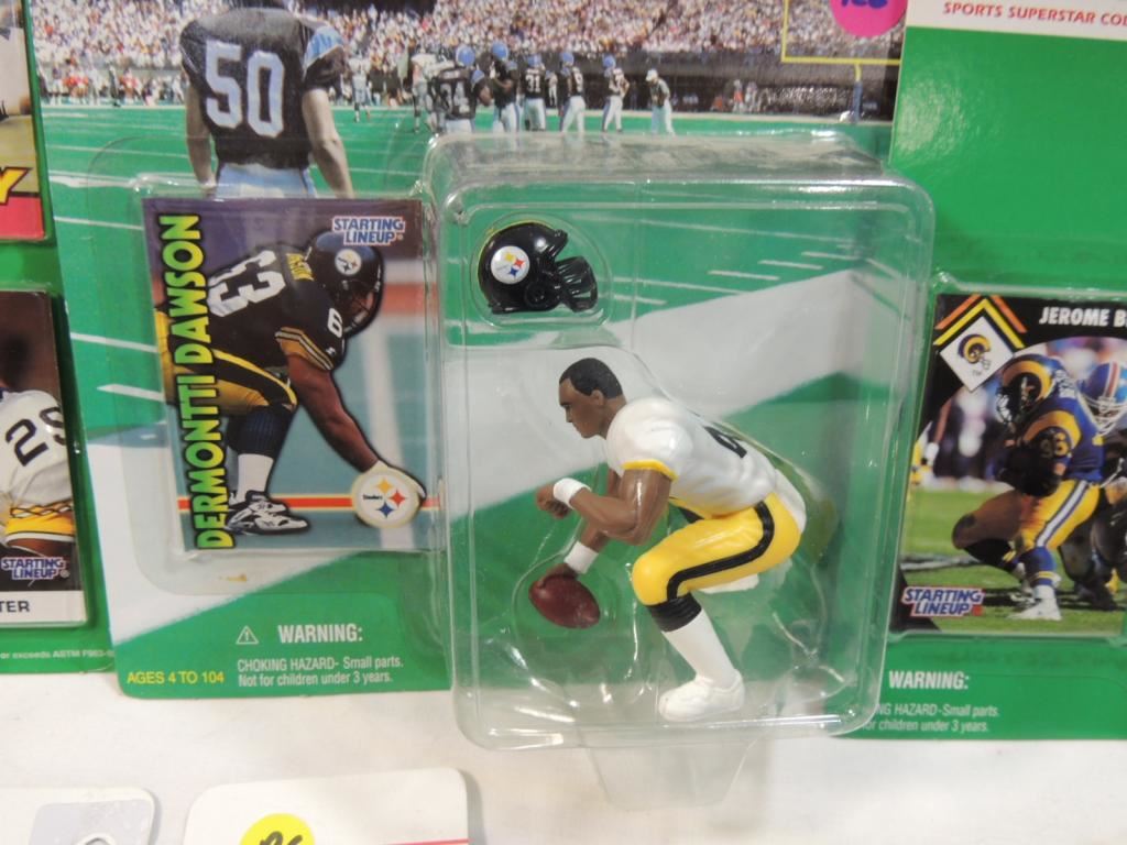 1996 KEVIN GREEN, 1995 JEROME BETTIS, 1999 DERMONTTI DAWSON, BERRY FOSTER, 1999 KORDELL STEWART CTION FIGURE STARTING LINEUP GREAT CONDITION. NFL COLLECTIBLE NEW NEVER OPENED. SPORTS SUPERSTAR COLLECTIBLES AS SHOWN SEE PHOTO FOR MORE DETAILS. AS SHOWN SEE PHOTO FOR MORE DETAILS.