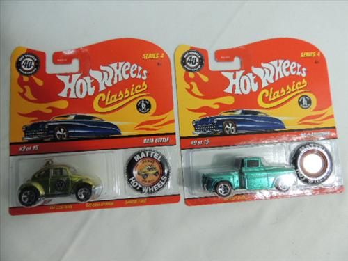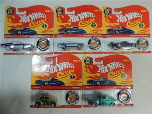 LOT 5 2007 CLASSIC HOT WHEELS SERIES 4: 65 MUSTANG, 67 GTO, BAJA BEETLE, KARMANN GHIA & 56 FLASHSIDER. AS SHOWN. VIEW PICTURE FOR DETAIL.
