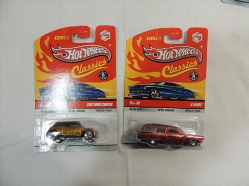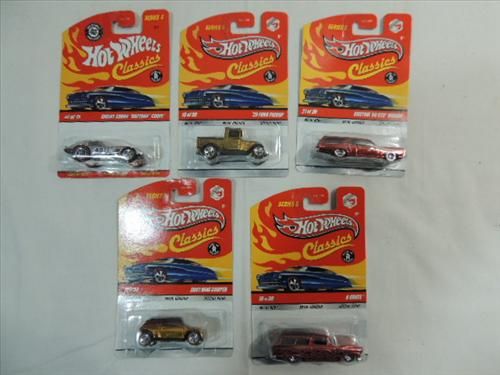 LOT 5 2008 CLASSIC HOT WHEELS SERIES 5: 29 FORD, SHELBY, 2001 MINI COOOPER, 66 GTO, 8 CRATE. AS SHOWN. VIEW PICTURE FOR DETAIL.