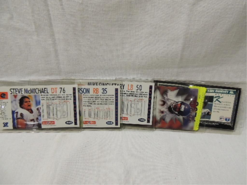LOT 5 (4) 1992 TEAM PLAYER CHICAGO BEARS FOOTBALL CARDS: JOHN THIERRY, STEVE MCMICHAEL, NEAL ANDERSON, MIKE SINGLETARY AND 1 BASEBALL CARD KEN GRIFFEY. AS SHOWN. VIEW PICTURE FOR DETAIL.