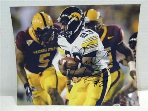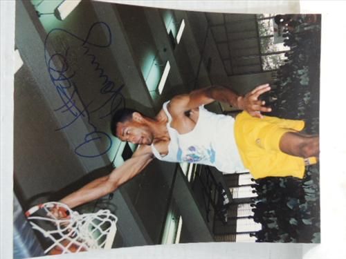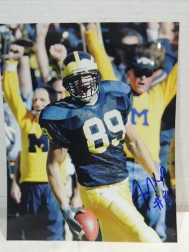 LOT 5 (4) COLLEGIATE PHOTOS AUTOGRAPHED: RICK MAJERUS, IOWA HAWKEYE #29, MICHIGAN WOLVERINES #89, UNIDENTIFIED BASKETBALL PLAYER & 1 BOXING ADVERT AUTOGRAPHED: VITALI KLITSCHKO. NO COAS. AS SHOWN. VIEW PICTURE FOR DETAIL.