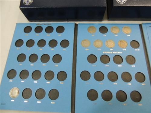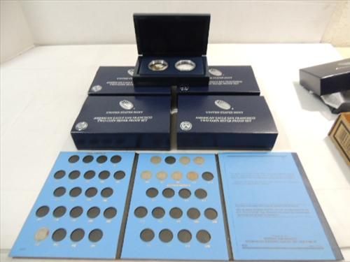 LOT 5 (4) UNITED STATE AMERICAN EAGLE COIN HOLDER (EMPTY) & WHITMAN NICKEL COIN HOLDER WITH 8 V-NICKELS. AS SHOWN. VIEW PICTURE FOR DETAIL.