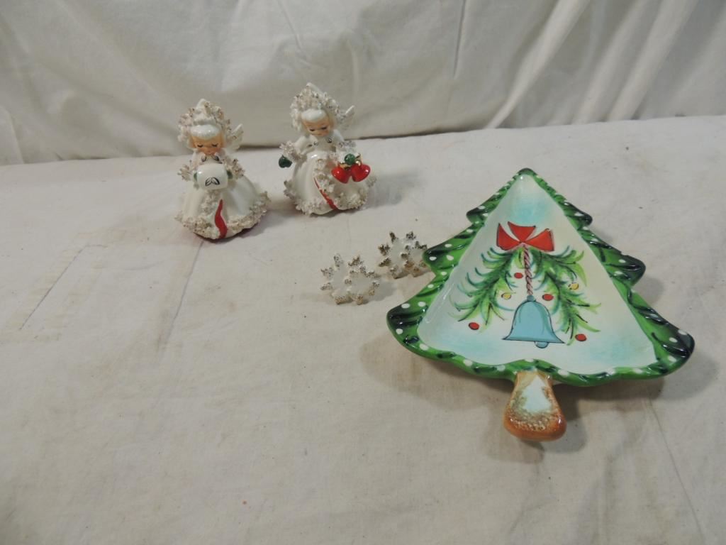 ANGEL CANDLE HOLDERS, CANDLE RINGS, CANDY DISH CHRISTMAS TREE AS SHOWN SEE PHOTO FOR MORE DETAILS.