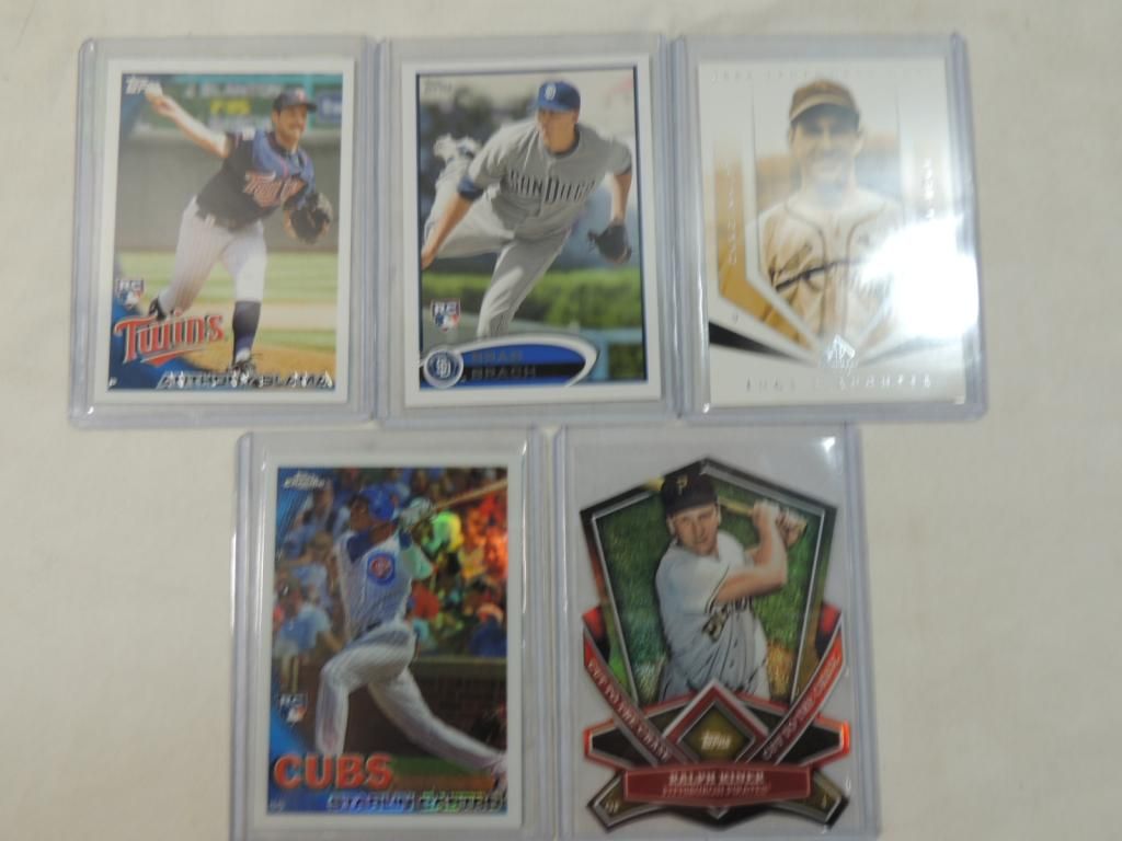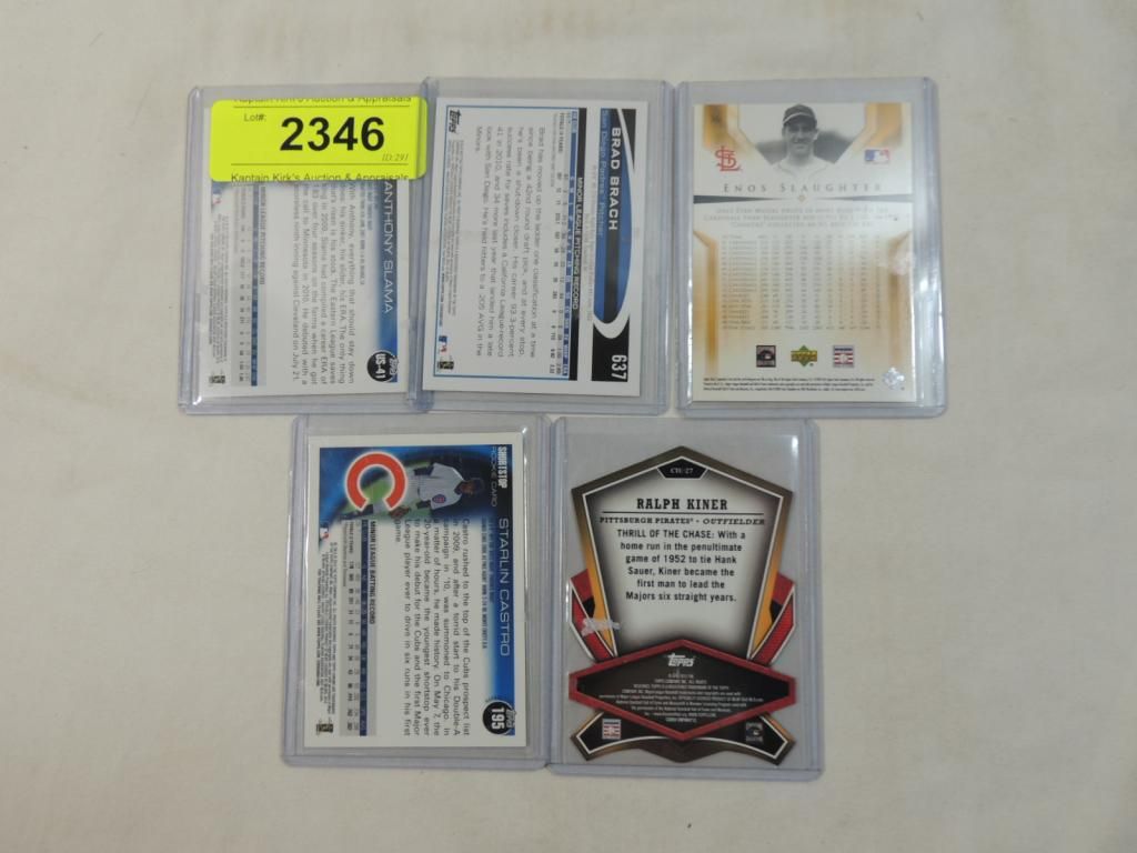 2010 TOPPS ANTHONY SLAMA ROOKIE CARD, 2012 TOPPS BRAD BRACH ROOKIE , 2004 UPPER DECK ENO SLAUGHTER #36, 2010 TOPPS STARLIN CASTRO ROOKIE, 2013 TOPPS RALPH KINER #CTC-27 CUT TO THE CHASE BASEBALL PLAYER CARD. BASEBALL TRADING CARDS. COLLECTIBLE. GOOD CON