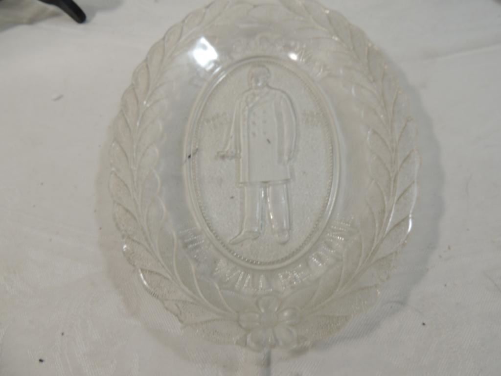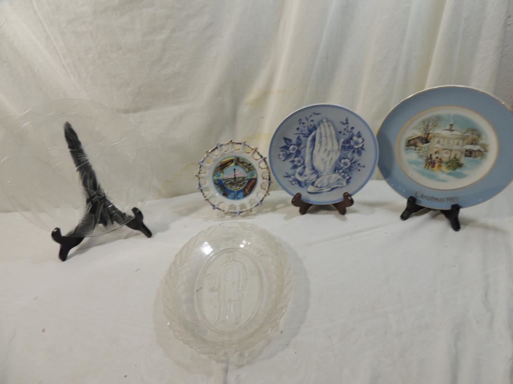 SERVING PLATES, DECORATIVE PLATES, COMMEMORATIVE PLATES, SOUVIENR PLATES, PRESSED GLASS PLATES, PORCELAIN PLATES AS SHOWN SEE PHOTO FOR MORE DETAILS.